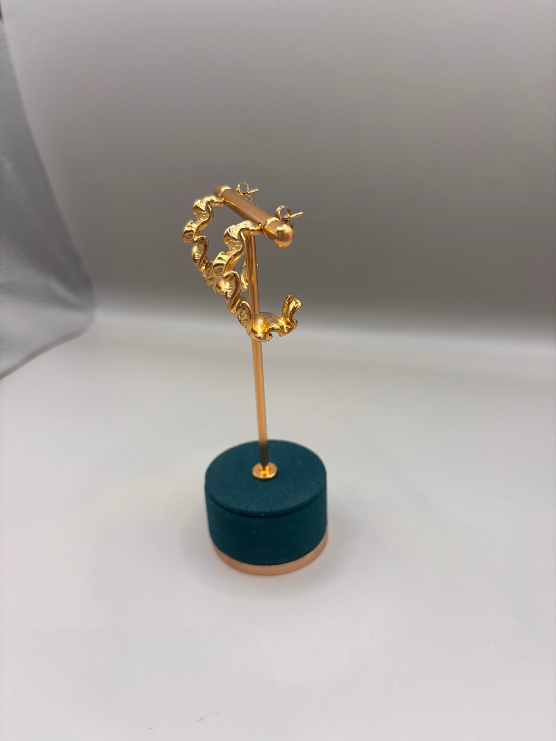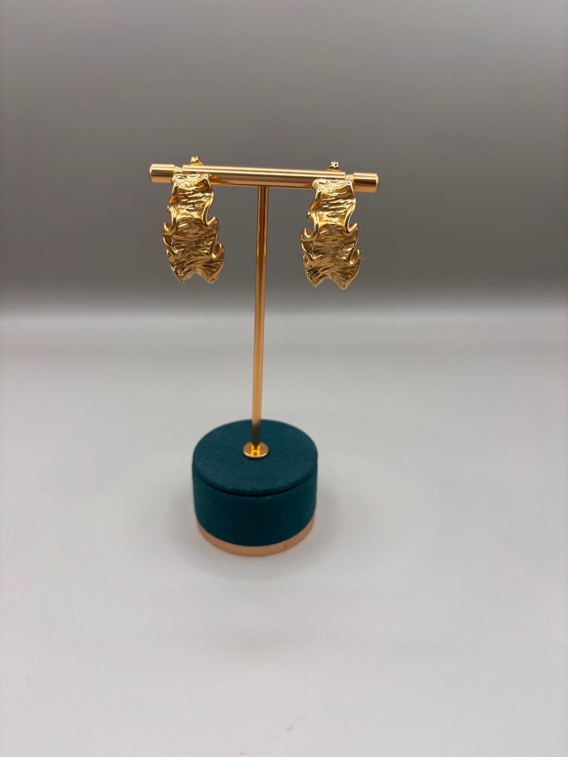 Gold textured crescent shape earring